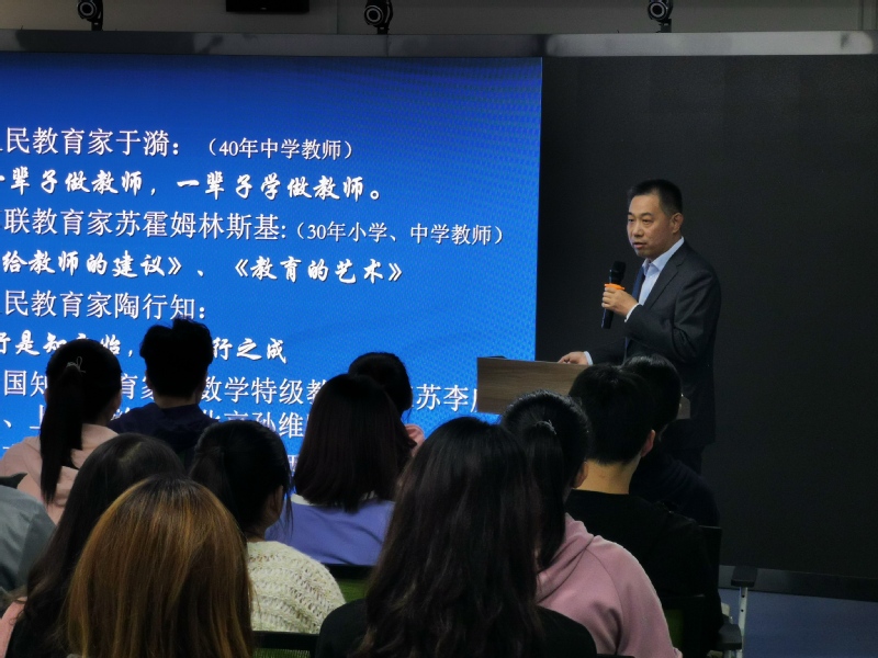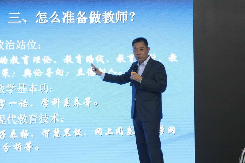 报告会上,贾贞锋做了题为“教书育人,立德树人”的精彩报告。他从“当前教育背景”“怎么做教师”“怎么准备做教师”“怎么做个好教师”四方面,详细阐述了一名优秀专业教师的成长历程和专业素养自我培养诉求.整场报告案例生动,意蕴深刻,引人深思,为师范类学生职业生涯规划提供了有益的理论和实践指导,在场聆听的学生纷纷表示受益匪浅。