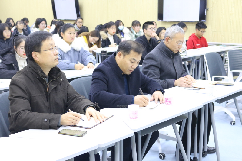 报告会上,曹炳友老师以“人生,与励志同行”为题,从“为提高教学水平励志”、“为提高教学能力励志”、“为提高教研能力励志”等六个方面总结了自己从教三十余年的经验,为同学们今后的职业生涯规划提出了宝贵的建议。曹老师将自己的教育生涯分为三个10年:第一个10年,把工作当职业,苦练教学基本功,为教师生涯打下坚实基础;第二个10年,把工作当事业,打磨教学,探索教学模式;第三个10年,把工作看作使命,确立教学主张。通过三个十年的讲述,曹老师希望同学们通过认真学习,充分利用好大学时光,追随时代前进的脚步,永不懈怠,努力实现梦想,成就美好人生。