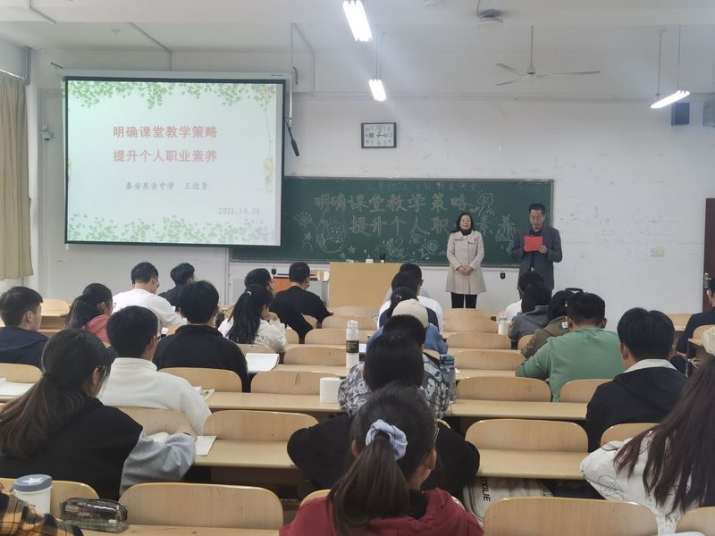 10月26日,化学化工学院于二综A2007组织校友讲堂活动,活动邀请了优秀校友、泰安市东岳中学优秀教师王德秀为学生作报告,化学化工学院分管教学副院长、党委副书记、教学秘书和20级化学师范班班主任出席了此次活动。