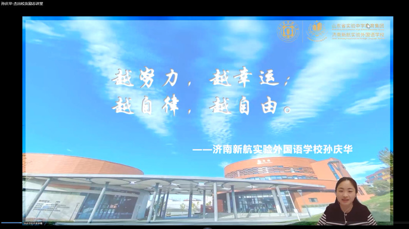 孙庆华,中共党员,2015级校友,在校期间参加第六届山东省师范类学生从业技能大赛获得一专多能组全省第一名,并代表全省参赛学生在颁奖典礼发言。毕业后就职于山东省实验中学教育集团济南新航实验外国语学校,现任校团委书记,校党支部委员,初一级部主任,就职期间获山东省“一师一优课”省优课、济南市“走青春路,做育花人”一等奖、校十佳教师、优秀党员、先进工作者、十大优秀员工等荣誉称号,所带班级被评为济南市优秀班集体。