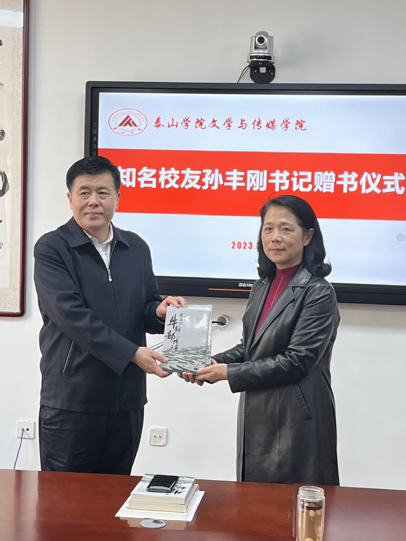 为了发挥文学作品的价值和作用,孙丰刚将他的文学作品小说《最后的牛耕部落》和散文集《极顶的风》两部共计80册,捐赠给文学与传媒学院和校图书馆,岱蕾文学社的师弟师妹们,供教师和学生阅读和研讨。